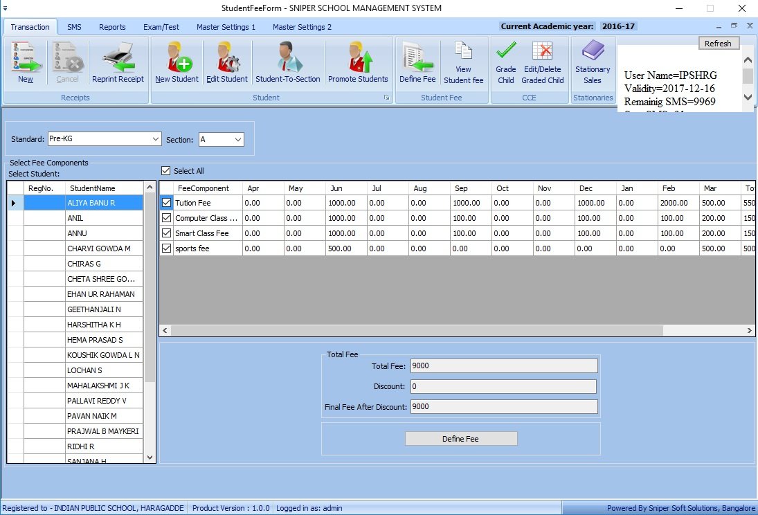 System. Handling the fee is one part rather keeping parents informed about the fee status is another part. We have integrated fee payment with SMS where in a SMS will be sent for the parents consisting information